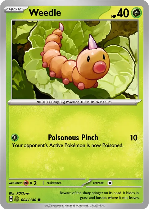NO. 0013 Hairy Bug Pokémon HT: 1' 00" WT: 7.1 lbs.