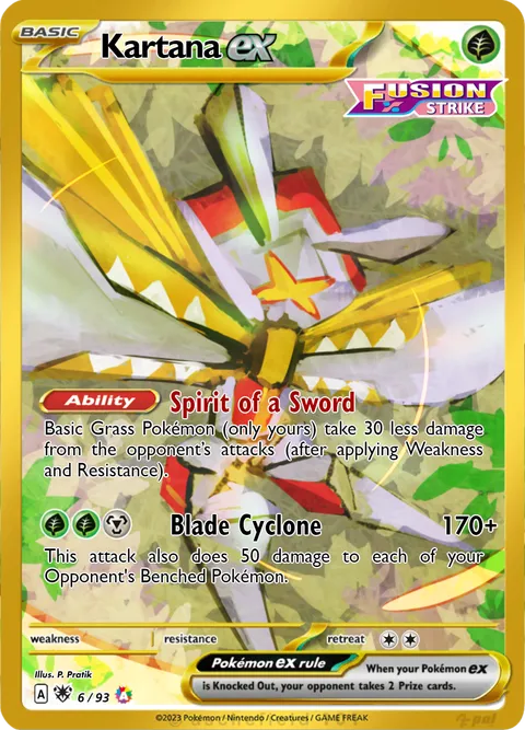 Basic Grass Pokémon (only yours) take 30 less damage from the opponent’s attacks (after applying Weakness and Resistance).Blade Cyclone • 170+