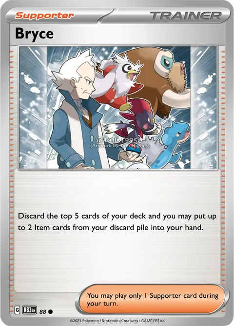 Discard the top 5 cards of your deck and you may put up to 2 Item cards from your discard pile into your hand.