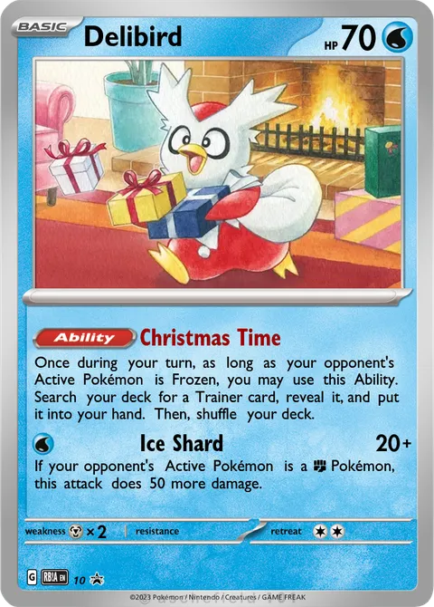 Once during your turn, as long as your opponent's Active Pokémon is Frozen, you may use this Ability. Search your deck for a Trainer card, reveal it, and put it into your hand. Then, shuffle your deck.Ice Shard • 20+