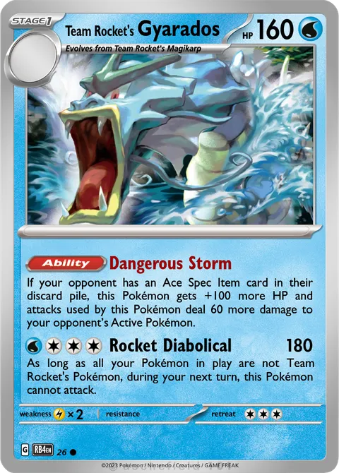 If your opponent has an Ace Spec Item card in their discard pile, this Pokémon gets +100 more HP and attacks used by this Pokémon deal 60 more damage to your opponent’s Active Pokémon.Rocket Diabolical • 180