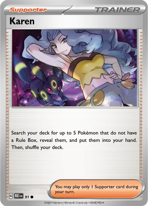 Search your deck for up to 5 Pokémon that do not have a Rule Box, reveal them, and put them into your hand. Then, shuffle your deck.
