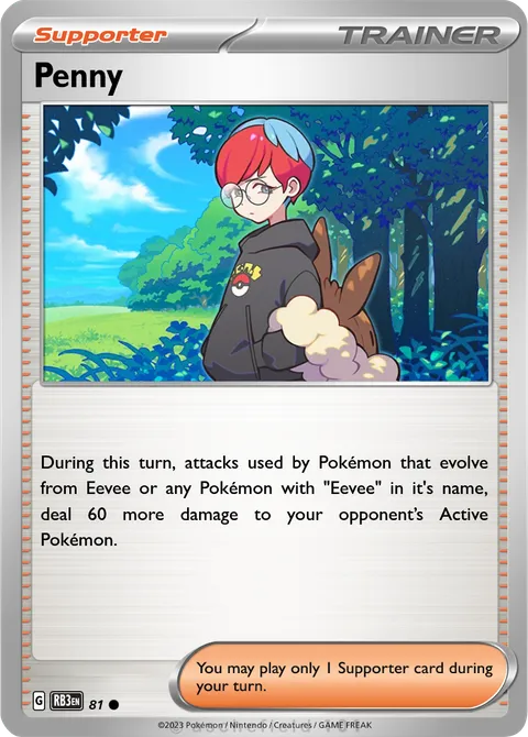 During this turn, attacks used by Pokémon that evolve from Eevee or any Pokémon with "Eevee" in it's name, deal 60 more damage to your opponent’s Active Pokémon.