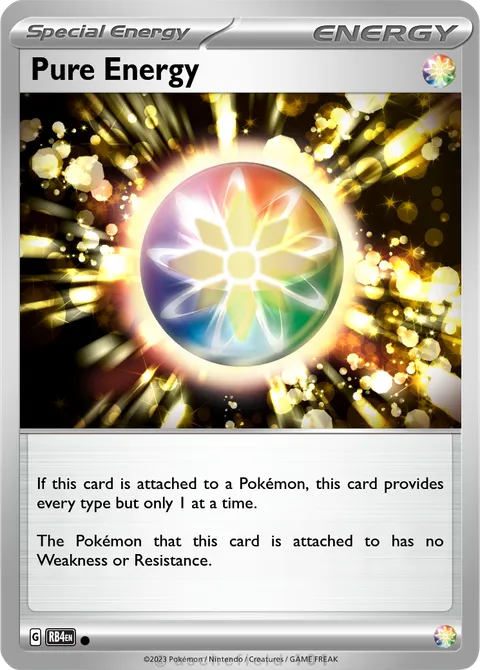 If this card is attached to a Pokémon, this card provides every type but only 1 at a time. The Pokémon that this card is attached to has no Weakness or Resistance.