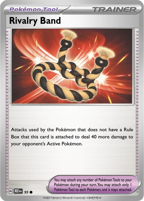 Attacks used by the Pokémon that does not have a Rule Box that this card is attached to deal 40 more damage to your opponent’s Active Pokémon.