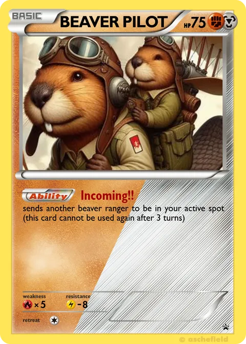 sends another beaver ranger to be in your active spot (this card cannot be used again after 3 turns)Weakness: