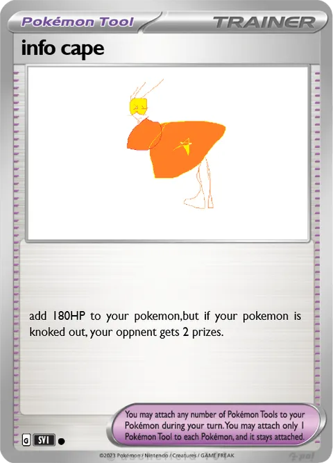 add 180HP to your pokemon,but if your pokemon is knoked out, your oppnent gets 2 prizes.