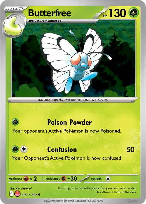 NO. 0012 Butterfly Pokémon HT: 3'07" WT: 70.5 lbs.