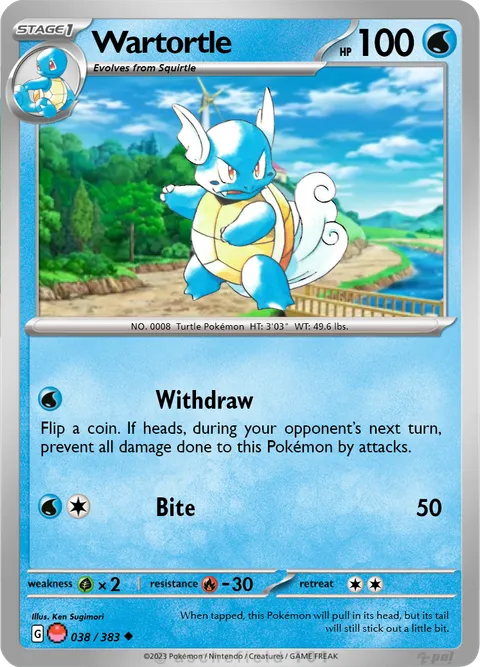 NO. 0008 Turtle Pokémon HT: 3'03" WT: 49.6 lbs.illus. Ken Sugimori#038/383 When tapped, this Pokémon will pull in its head, but its tail will still stick out a little bit.Created by @ThickTomato on 12 February 2024