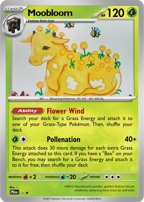 NO. --- Blooming Pokémon HT: 4'0" WT: 650 lbs.illus. ---#---Where Mooblooms wander, golden flowers bloom endlessly, attracting bees from far and wideCreated by @ToastnButtah on 26 August 2025