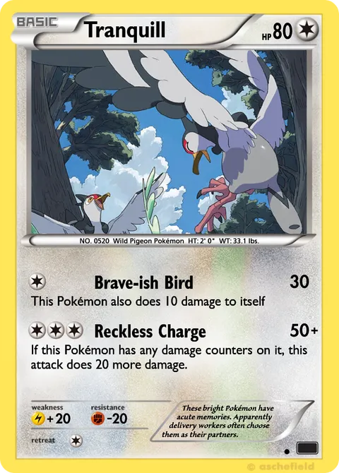 NO. 0520 Wild Pigeon Pokémon HT: 2' 0" WT: 33.1 lbs.These bright Pokémon have acute memories. Apparently delivery workers often choose them as their partners.Created by @Toti on 20 February 2026