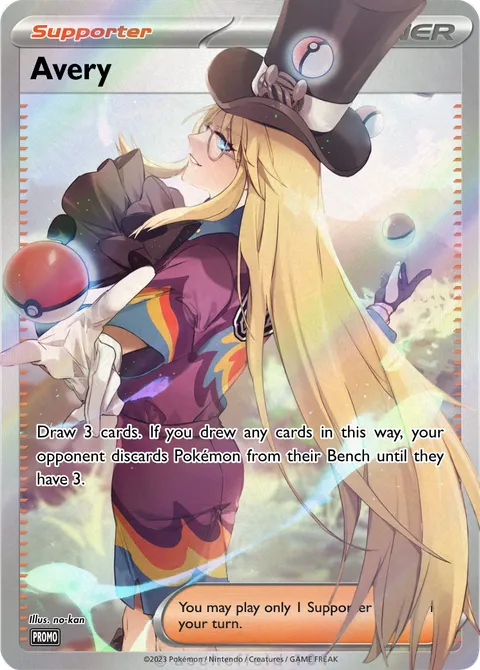 Draw 3 cards. If you drew any cards in this way, your opponent discards Pokémon from their Bench until they have 3.