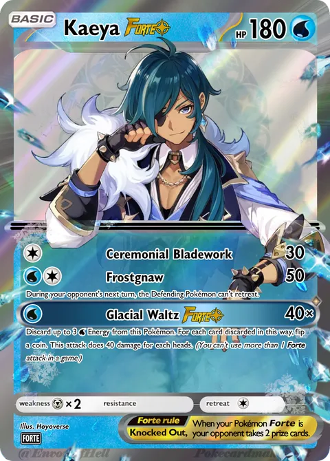 == Discard up to 3 W Energy from this Pokémon. For each card discarded in this way, flip a coin. This attack does 40 damage for each heads. (You can't use more than 1 Forte attack in a game.) ==