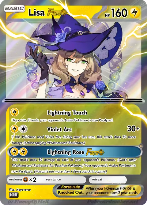 This attack does 50 damage to each of your opponent's Pokémon. (Don’t apply Weakness and Resistance for Benched Pokémon.) Your opponent's Active Pokémon is now Paralyzed. (You can't use more than 1 Forte attack in a game.)