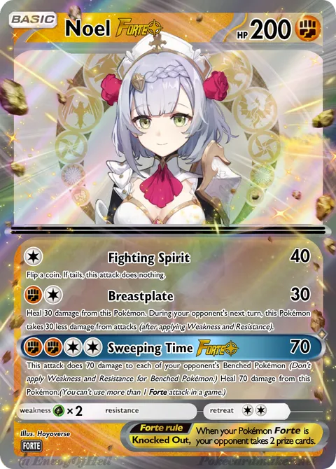 This attack does 70 damage to each of your opponent's Benched Pokémon (Don't apply Weakness and Resistance for Benched Pokémon.) Heal 70 damage from this Pokémon.(You can't use more than 1 Forte attack in a game.)