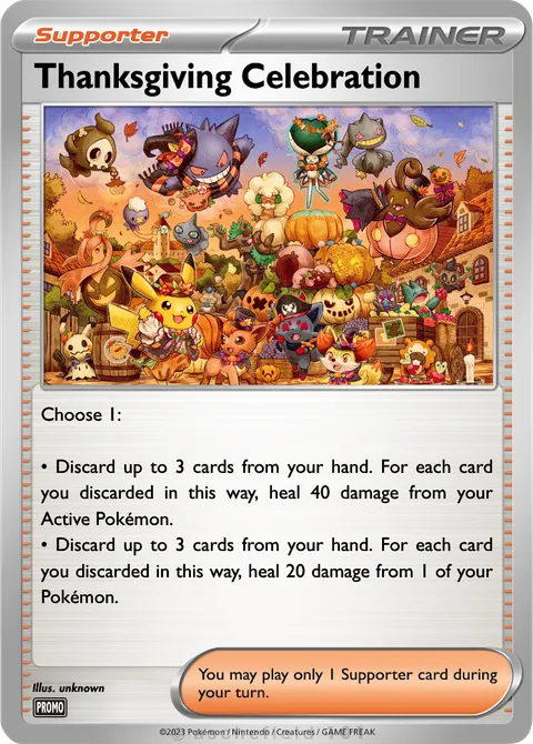 Choose 1: • Discard up to 3 cards from your hand. For each card you discarded in this way, heal 40 damage from your Active Pokémon. • Discard up to 3 cards from your hand. For each card you discarded in this way, heal 20 damage from 1 of your Pokémon.