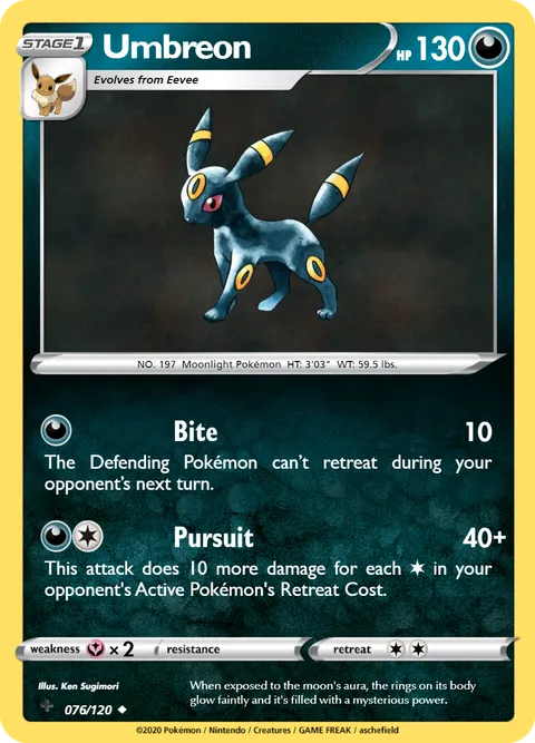 NO. 197 Moonlight Pokémon HT: 3'03" WT: 59.5 lbs.illus. Ken Sugimori#076/120When exposed to the moon's aura, the rings on its body glow faintly and it's filled with a mysterious power.Created by @Ultima1299 on 06 July 2023