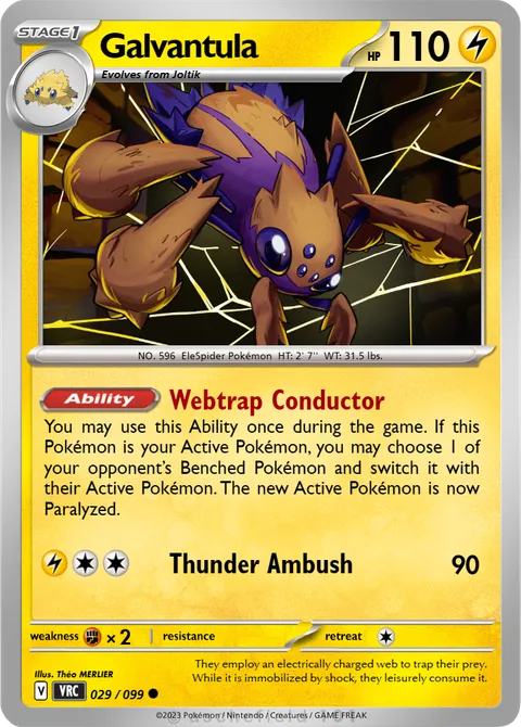 You may use this Ability once during the game. If this Pokémon is your Active Pokémon, you may choose 1 of your opponent’s Benched Pokémon and switch it with their Active Pokémon. The new Active Pokémon is now Paralyzed.Thunder Ambush • 90