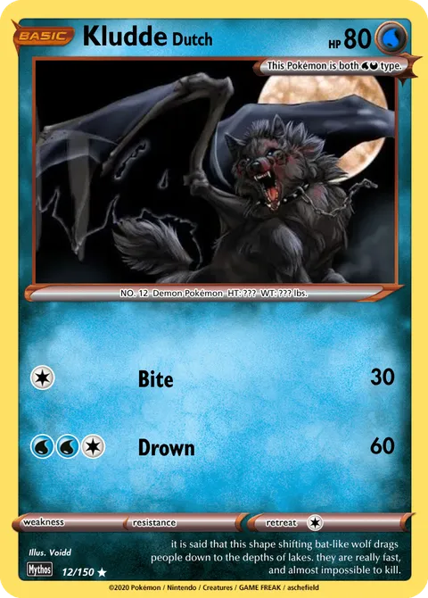it is said that this shape shifting bat-like wolf drags people down to the depths of lakes. they are really fast, and almost impossible to kill.