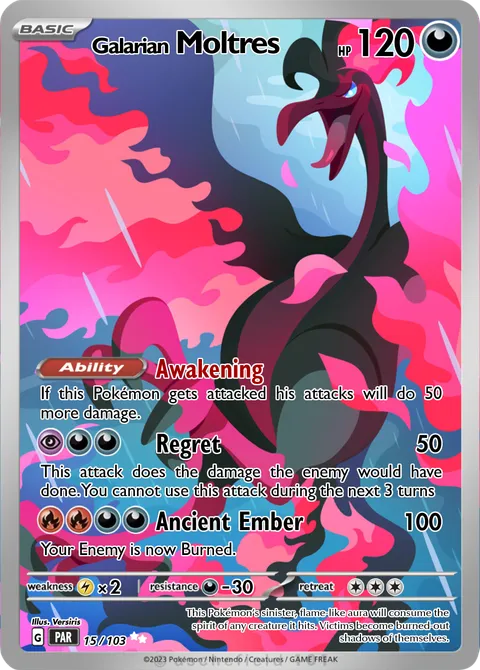 illus. Versiris#15/103This Pokémon’s sinister, flame-like aura will consume the spirit of any creature it hits. Victims become burned-out shadows of themselves.Created by @Voindex on 06 September 2024Includes assets by Creatures Inc.