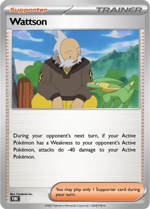 During your opponent's next turn, if your Active Pokémon has a Weakness to your opponent's Active Pokémon, attacks do -40 damage to your Active Pokémon.