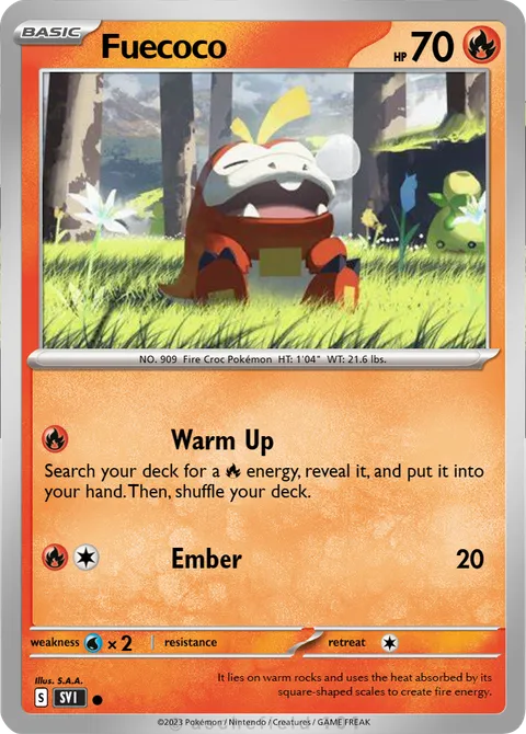 NO. 909 Fire Croc Pokémon HT: 1'04" WT: 21.6 lbs.illus. S.A.A.It lies on warm rocks and uses the heat absorbed by its square-shaped scales to create fire energy.Created by @Yoshigamer8 on 13 April 2024