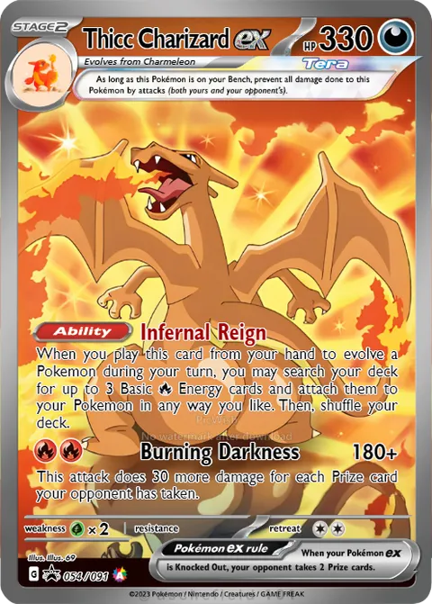 When you play this card from your hand to evolve a Pokemon during your turn, you may search your deck for up to 3 Basic R Energy cards and attach them to your Pokemon in any way you like. Then, shuffle your deck.Burning Darkness • 180+