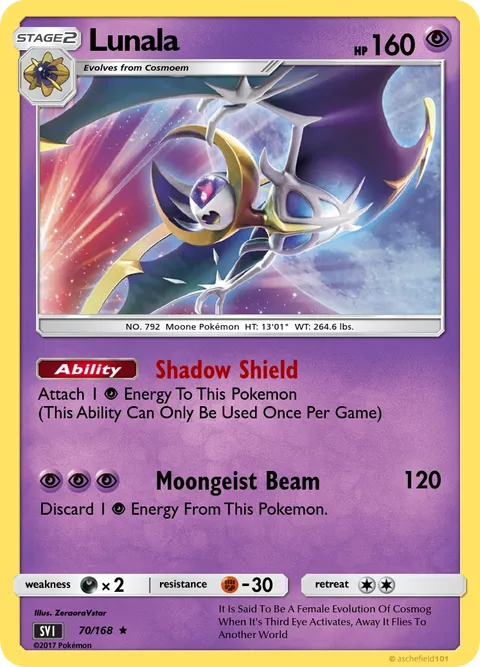 Attach 1 P Energy To This Pokemon (This Ability Can Only Be Used Once Per Game)Moongeist Beam • 120