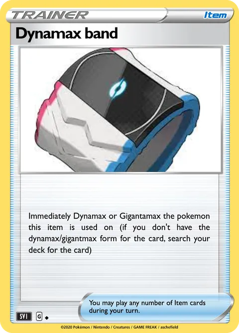 Immediately Dynamax or Gigantamax the pokemon this item is used on (if you don't have the dynamax/gigantmax form for the card, search your deck for the card)