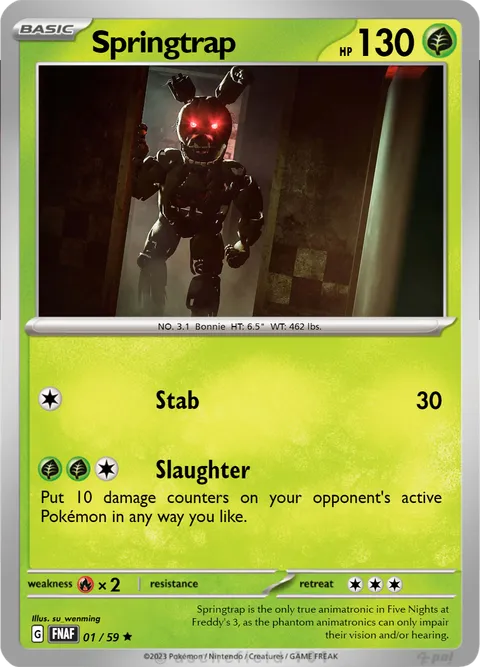 NO. 3.1 Bonnie HT: 6.5" WT: 462 lbs.illus. su_wenming#01/59Springtrap is the only true animatronic in Five Nights at Freddy's 3, as the phantom animatronics can only impair their vision and/or hearing.Created by @aspitpiay on 10 January 2024