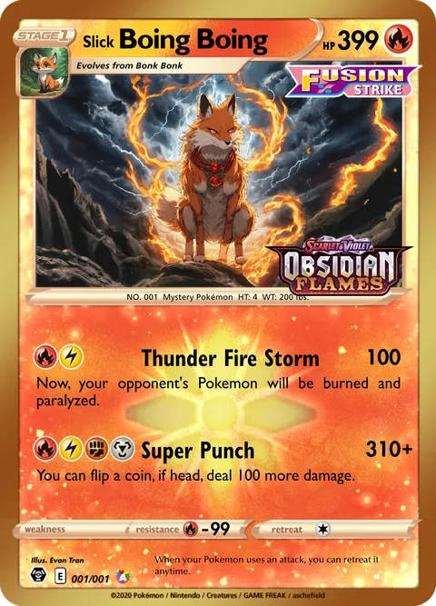 NO. 001 Mystery Pokémon HT: 4 WT: 200 lbs.illus. Evan Tran#001/001When your Pokemon uses an attack, you can retreat it anytime.Created by @bakuevan on 23 November 2023