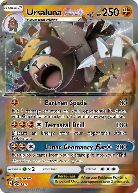 Put 7 damage counters on your opponent's Pokémon with Glacio Forte markers on them in any way you like.