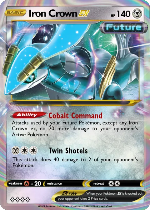 Attacks used by your Future Pokémon, except any Iron Crown ex, do 20 more damage to your opponent’s Active PokémonTwin Shotels