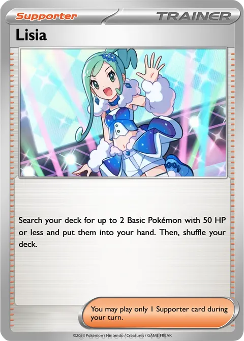 Search your deck for up to 2 Basic Pokémon with 50 HP or less and put them into your hand. Then, shuffle your deck.