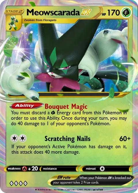 You must discard a G Energy card from this Pókemon in order to use this Ability. Once during your turn, you may do 40 damage to 1 of your opponent’s Pokémon.Scratching Nails • 60+