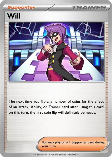 The next time you flip any number of coins for the effect of an attack, Ability, or Trainer card after using this card on this turn, the first coin flip will definitely be heads.