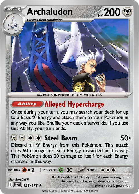 Once during your turn, you may search your deck for up to 2 Basic M Energy and attach them to your Pokémon in any way you like. Shuffle your deck afterwards. If you use this Ability, your turn ends.Steel Beam • 50×