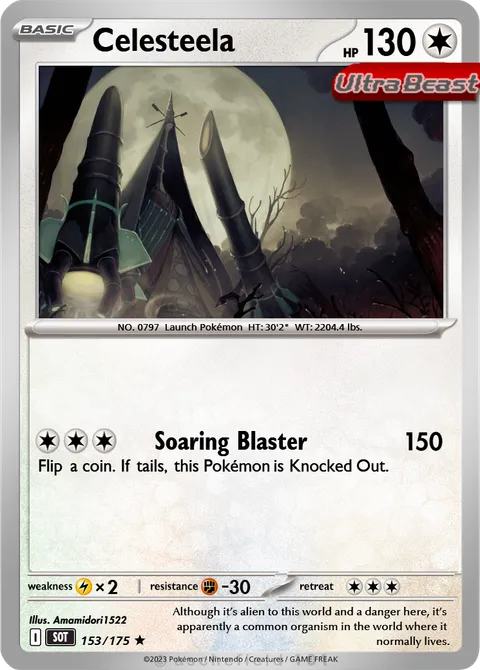 NO. 0797 Launch Pokémon HT: 30'2" WT: 2204.4 lbs.illus. Amamidori1522#153/175Although it’s alien to this world and a danger here, it’s apparently a common organism in the world where it normally lives.Created by @beens47 on 27 November 2025.