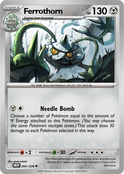 NO. 0598 Thorn Pod Pokémon HT: 3'3" WT: 242.5 lbs.illus. penta-oekaki#054/076This Pokémon scrapes its spikes across rocks, and then uses the tips of its feelers to absorb the nutrients it finds within the stone.Created by @beens47 on 08 September 2025.