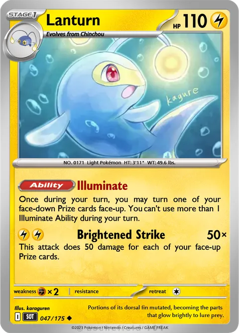 Once during your turn, you may turn one of your face-down Prize cards face-up. You can't use more than 1 Illuminate Ability during your turn.Brightened Strike • 50×