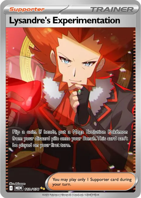 Flip a coin. If heads, put a Mega Evolution Pokémon from your discard pile onto your Bench. This card can't be played on your first turn.