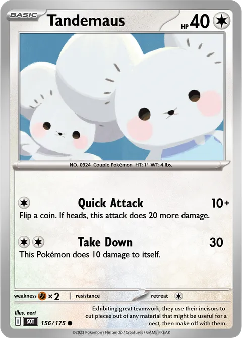 NO. 0924 Couple Pokémon HT: 1' WT: 4 lbs.illus. nori#156/175Exhibiting great teamwork, they use their incisors to cut pieces out of any material that might be useful for a nest, then make off with them.Created by @beens47 on 27 November 2025.