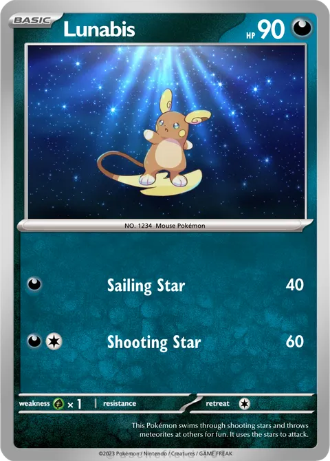 This Pokémon swims through shooting stars and throws meteorites at others for fun. It uses the stars to attack.