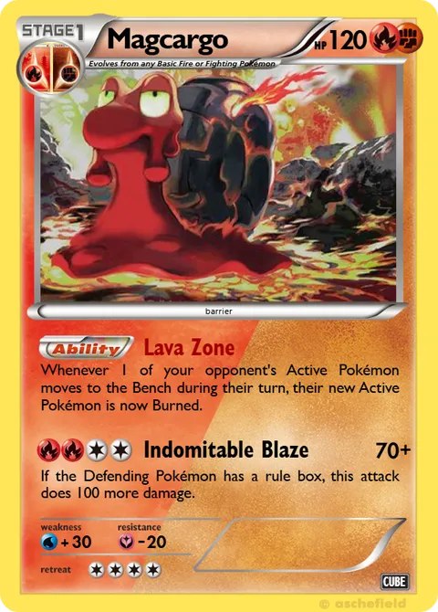 Whenever 1 of your opponent's Active Pokémon moves to the Bench during their turn, their new Active Pokémon is now Burned.Indomitable Blaze • 70+