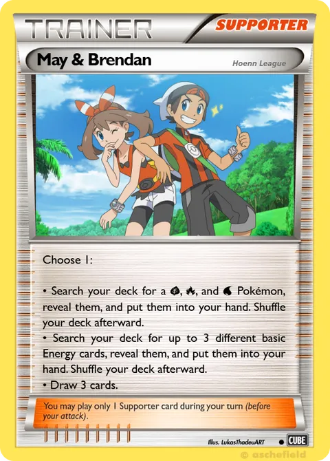Choose 1: • Search your deck for a G, R, and W Pokémon, reveal them, and put them into your hand. Shuffle your deck afterward. • Search your deck for up to 3 different basic Energy cards, reveal them, and put them into your hand. Shuffle your deck afterward. • Draw 3 cards.