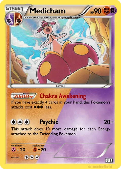 If you have exactly 4 cards in your hand, this Pokémon's attacks cost CCC less.Psychic • 20+