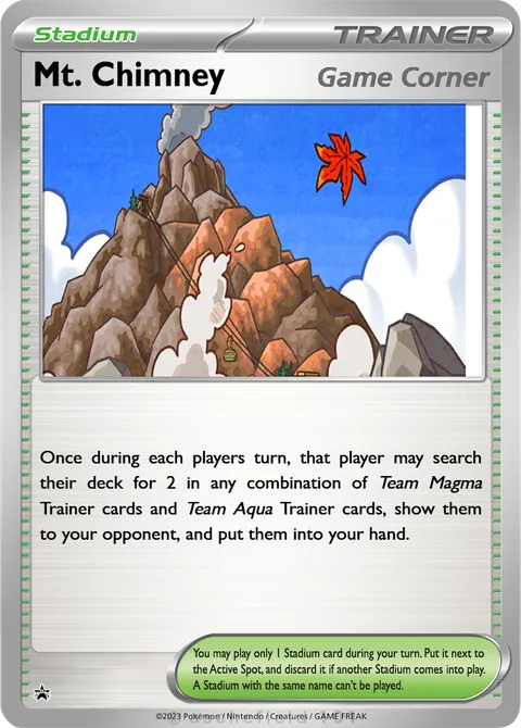 Once during each players turn, that player may search their deck for 2 in any combination of Team Magma Trainer cards and Team Aqua Trainer cards, show them to your opponent, and put them into your hand.