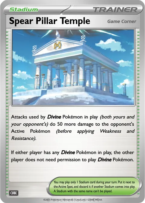 Attacks used by Divine Pokémon in play (both yours and your opponent's) do 50 more damage to the opponent's Active Pokémon (before applying Weakness and Resistance). If either player has any Divine Pokémon in play, the other player does not need permission to play Divine Pokémon.
