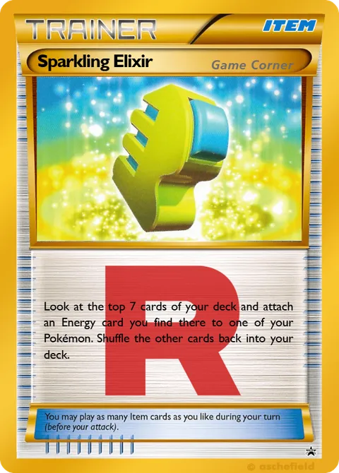 Look at the top 7 cards of your deck and attach an Energy card you find there to one of your Pokémon. Shuffle the other cards back into your deck.