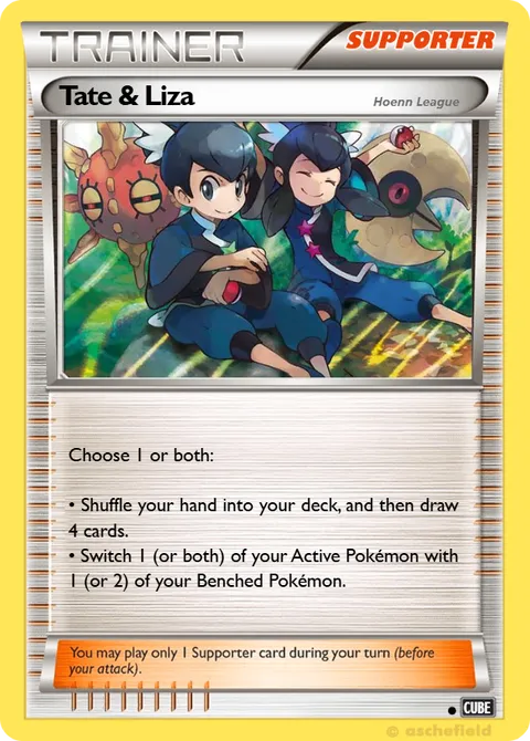Choose 1 or both: • Shuffle your hand into your deck, and then draw 4 cards. • Switch 1 (or both) of your Active Pokémon with 1 (or 2) of your Benched Pokémon.
